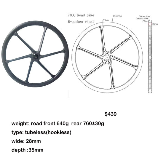 carbon 6 Spoke Wheelset 700C Road Bike Gravel SuperLight Tubeless HG XDR 12s Speed Disc Ratchet System 36T Hub
