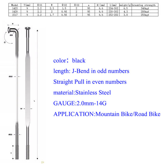Bike spokes Super Light Bicycle Spoke J-Bend Straight Pull 14G Gauge 2.0 MTB Road Bike Stainless Steel 6.5g/4.3g/3.8g