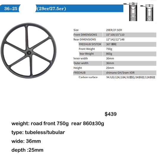 Carbon 6 Spoke wheels 29er XC AM E-Bike MTB Wheelset 27.5inch carbon Six spoke Wheels